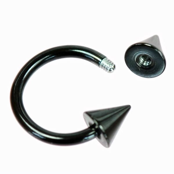 【メール便対応】ボディピアス サーキュラーバーベル ブラック コーン 14G(1.6mm) 黒色 サージカルステンレス カラーコーティング加工 14ゲージ(1.6ミリ) スパイク【軟骨ピアス トラガス イヤーロブ ヘリックス リップ タンリム ロブ】 ┃