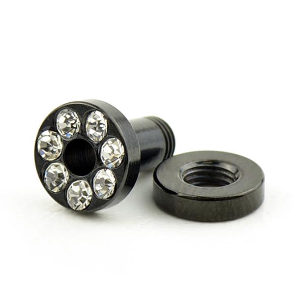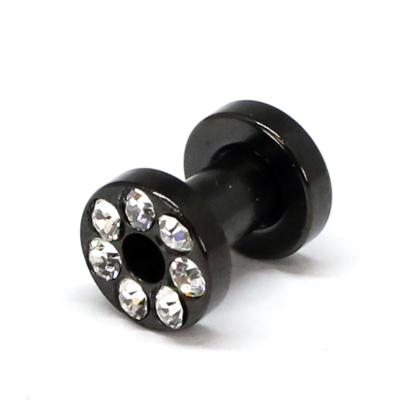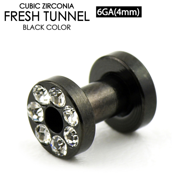 メール便 送料無料 フレッシュトンネル ブラック ラインストーン付 6GA(4mm) サージカルステンレス316L BLACK カラーコーティング加工 ボディーピアス ゴージャス イヤーロブ 6ゲージ┃