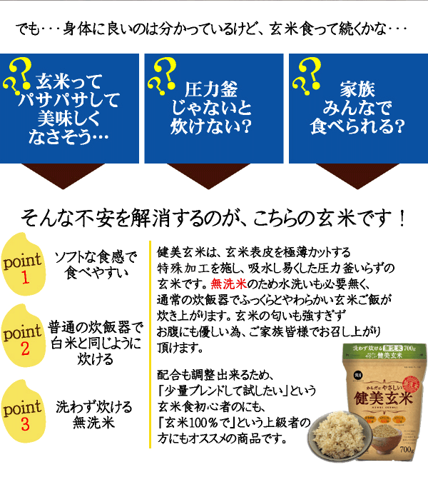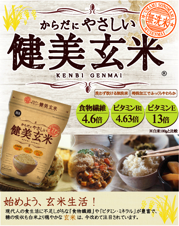 健美玄米は、玄米表皮に極薄カットを施したとてもソフトな食感を実現した玄米です。