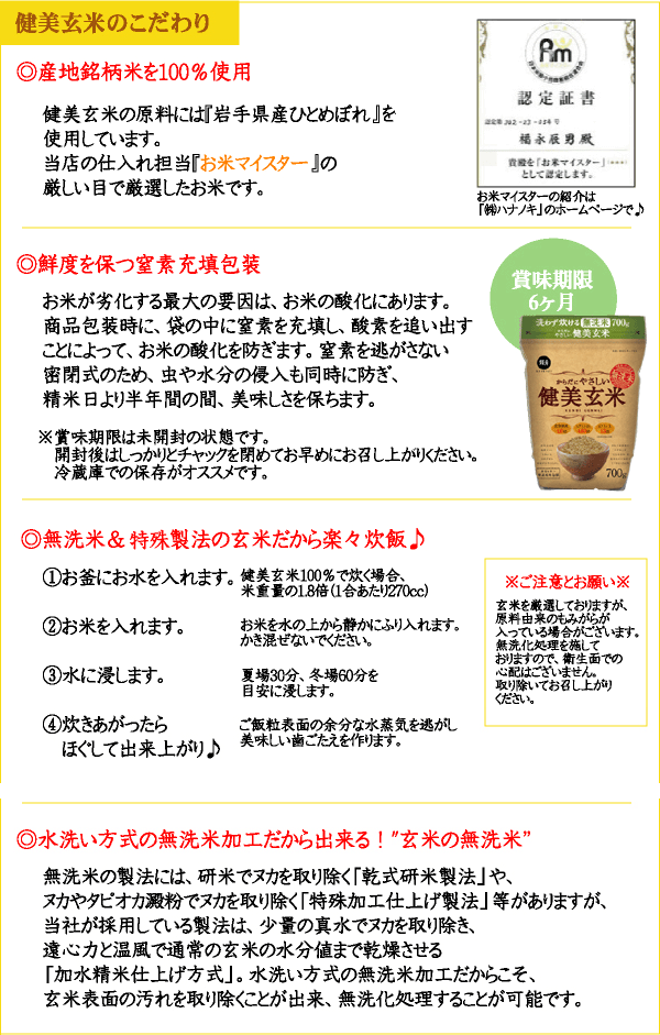 新米 令和7年産 無洗米 からだにやさしい健美玄米 2kg 送料760円 米岩手県産ひとめぼれ使用/宅配便送料無料商品と同梱OK
