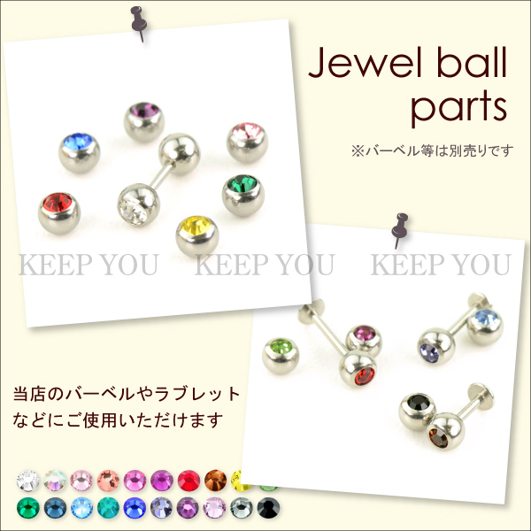 【メール便対応】ジュエル ボール パーツ 14G(1.6mm)5mm玉 ボディーピアス カラーストーン 5ミリ カラー ジュエル カスタム 替玉 スペア ハンドメイド用 付け替え 14ゲージ(1.6ミリ)┃