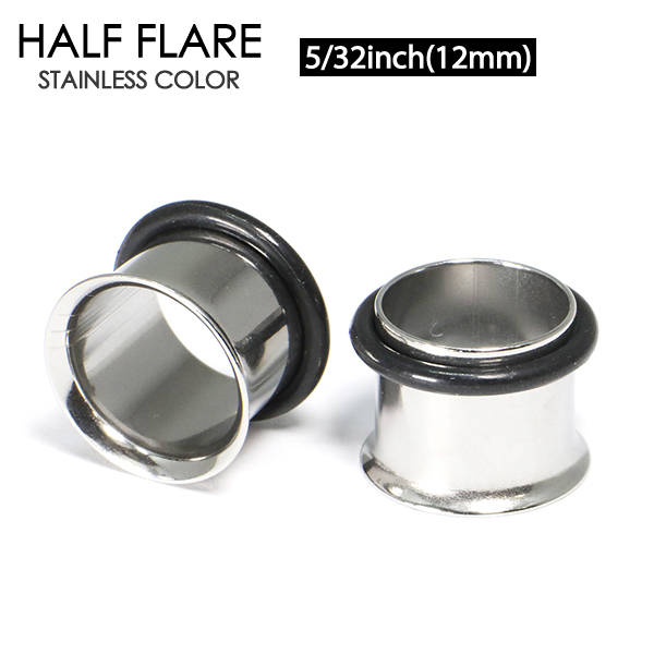 【メール便対応】シングルフレア ハーフフレア 5/32inch(12mm)ボディピアス サージカルステンレス316L アイレット 定番ボディーピアス ホールトゥピアス 5/32インチ(12ミリ)┃