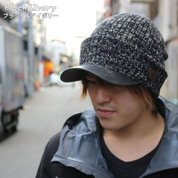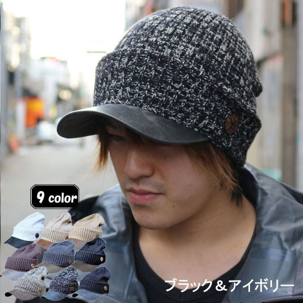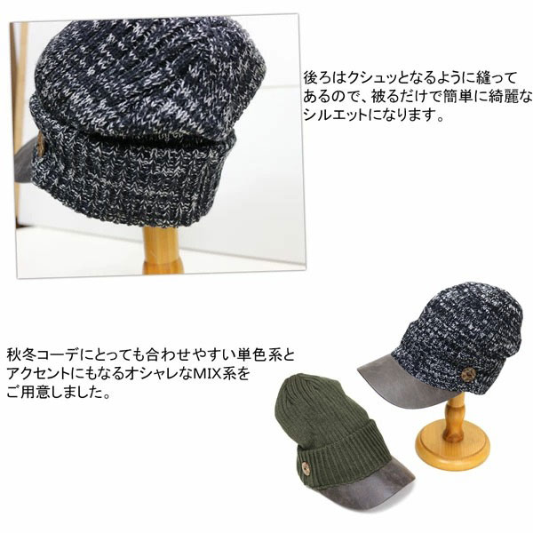 ニット 送料無料 帽子 レディース 帽子 メンズ ニットキャップ つば合皮 ニットキャスケット