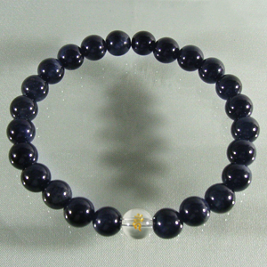 青トラ目石をベースに梵字の入った水晶を使用した天然石ブレスレットです。しっかりとした存在感を発揮してくれる一品!