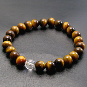 黄トラ目石をベースに梵字の入った水晶を使用した天然石ブレスレットです。しっかりとした存在感を発揮してくれる一品!