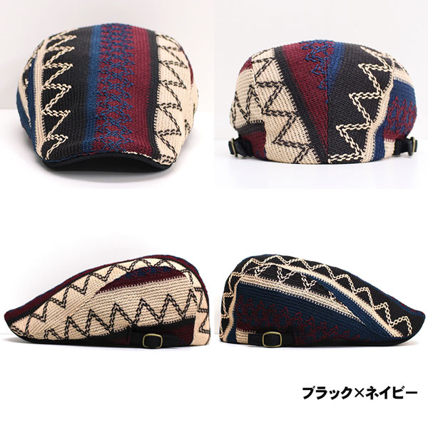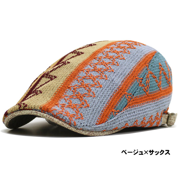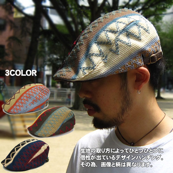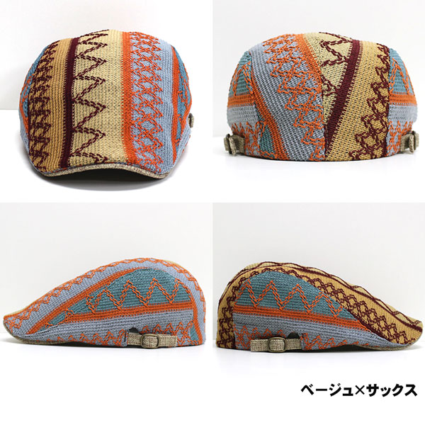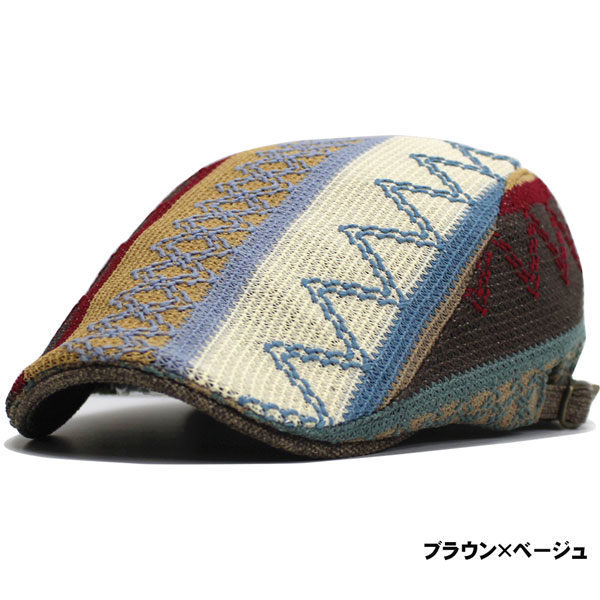 帽子 メンズ ハンチング レディース 春夏 カラフル ステッチ MIXジャギー 男女兼用 サイズ調節可