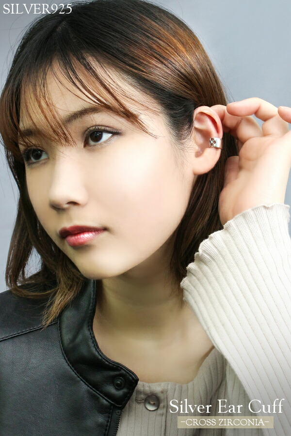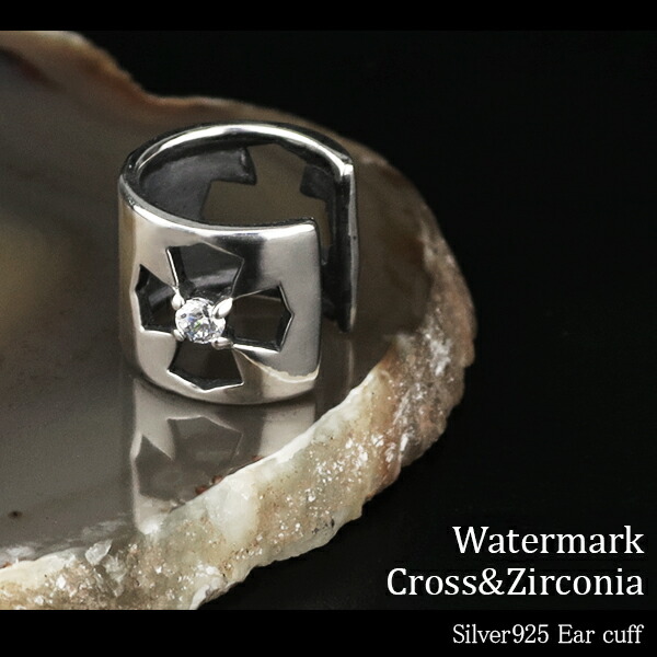 透かし クロスジルコニア シルバーイヤーカフ (1P/片耳用)
