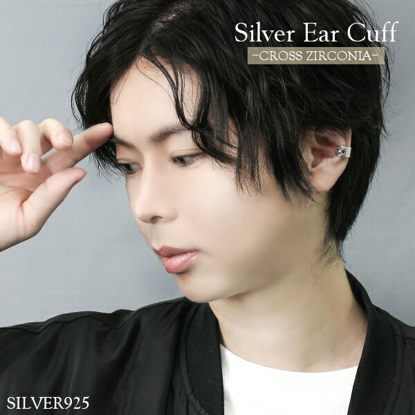 透かし クロスジルコニア シルバーイヤーカフ 1P 片耳用 シルバー925 イヤーカフス イヤカフ ノンホールピアス イヤリング メンズ 男性 十字架