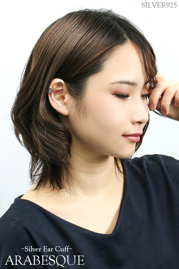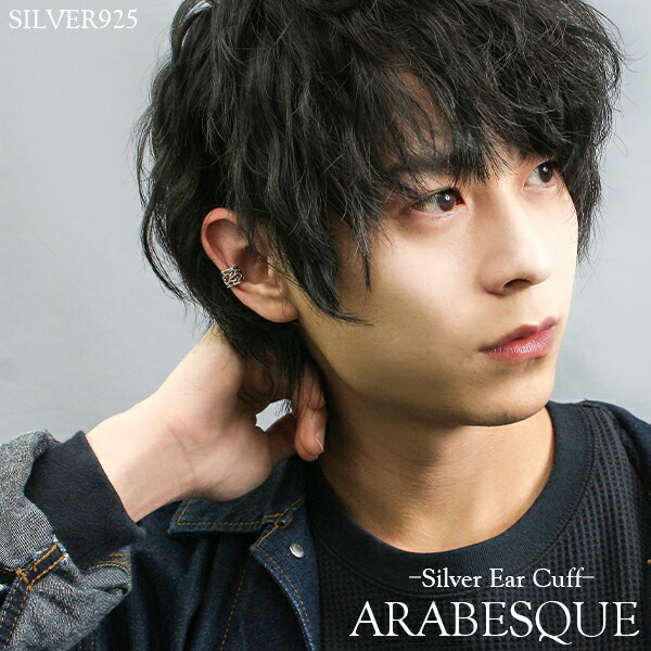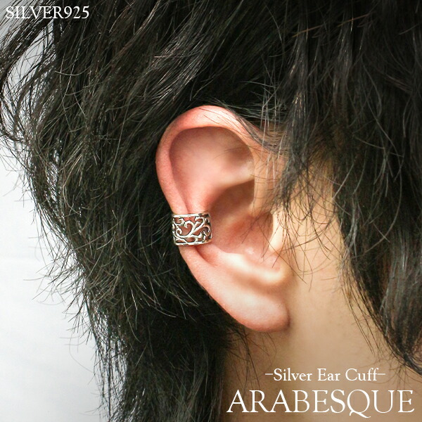 イヤーカフ メンズ レディース 透かし唐草 アラベスク 和柄 シルバー 1P 片耳 おしゃれ ノンホールピアス イヤークリップ カフス