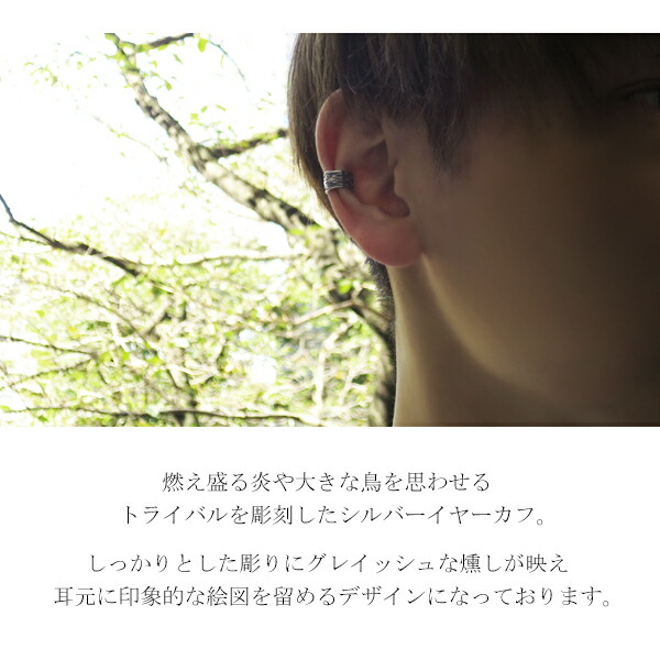 (メンズアクセサリー メンズジュエリー レディースアクセサリー レディースジュエリー シルバーアクセサリー シルバージュエリー シルバーイヤーカフ イヤーカフ イヤーカフス 大人 粋 かっこいい クール スタイリッシュ スマート 綺麗 きれい 上品 彫り 彫刻 いぶし銀 燻し銀 炎 火 ファイア 鳥 不死鳥 フェニックス バード 唐草 からくさ カラクサ 唐草模様 花 華 蔦 草 和装 袴 はかま 着物 きもの ゆかた 浴衣 幾何学 刺青 トライバル アラベスク アラベスク模様 クラシック クラシカル ハード ロック パンク ヴィジュアル系 ビジュアル系 V系 きれいめカジュアル 上品カジュアル)