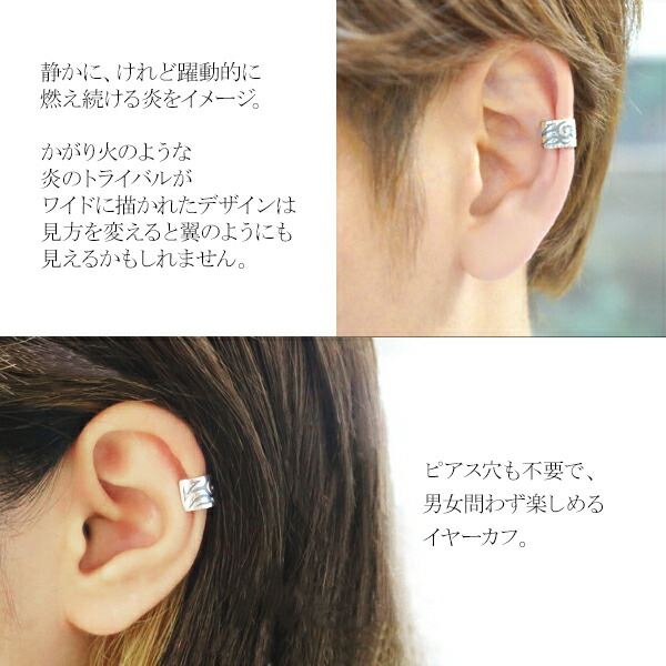 イヤーカフ イヤーカフス メンズ シルバー イヤークリップ トライバル 炎【新宿 銀の蔵】