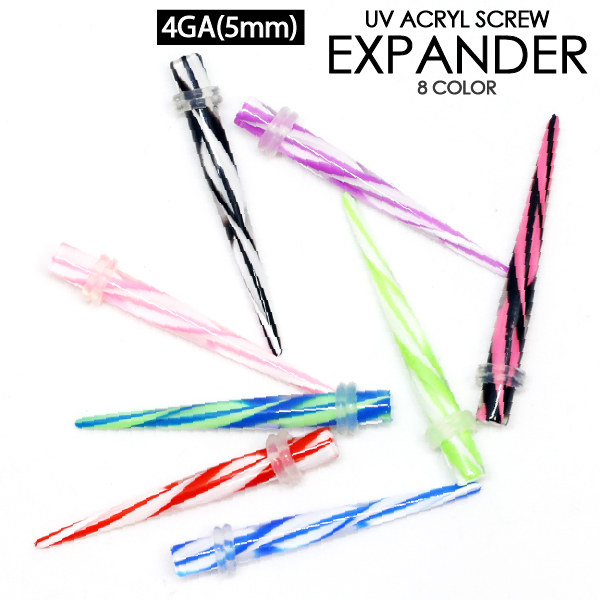 【メール便対応】UVアクリル 拡張器 スクリュー 4G(5mm) エキスパンダー エクステンション ニードル ボディーピアス ホールアップ カラー 4ゲージ(5ミリ)┃