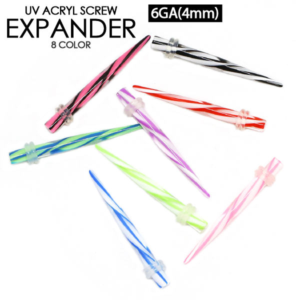 【メール便対応】UVアクリル 拡張器 スクリュー 6G(4mm) エキスパンダー エクステンション ニードル ボディーピアス ホールアップ カラー 6ゲージ(4ミリ)┃
