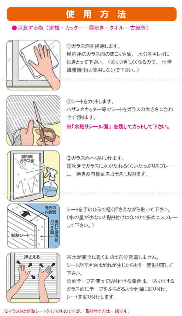 結露防止効果抜群!3層シート7mm厚の空気層で超強力W省エネ効果。窓ガラスの熱の伝わりを抑え、シミやカビの原因となる結露防止効果を発揮するとともに、暖房効率を大幅にアップ!霧吹きスプレーによる水貼りタイプだから、簡単にキレイに貼れて、キレイにはがせます。目隠し効果もあります。寒冷地はこちらがおすすめです。