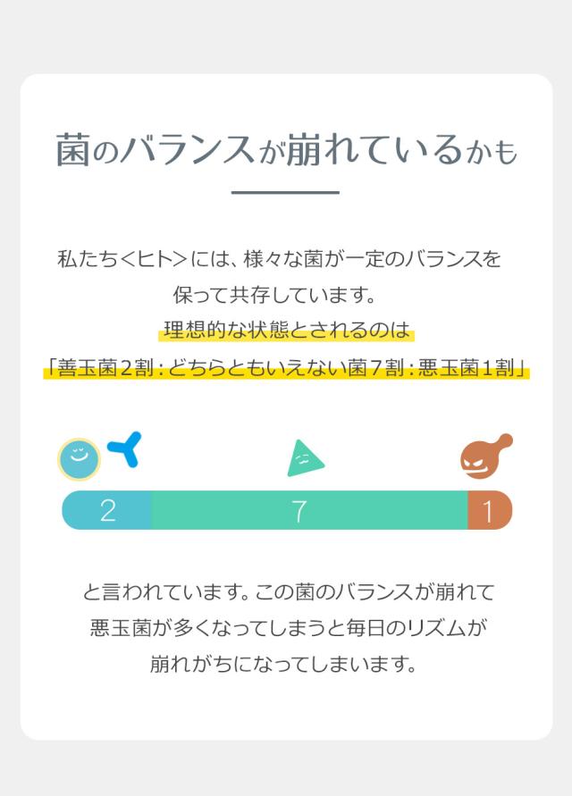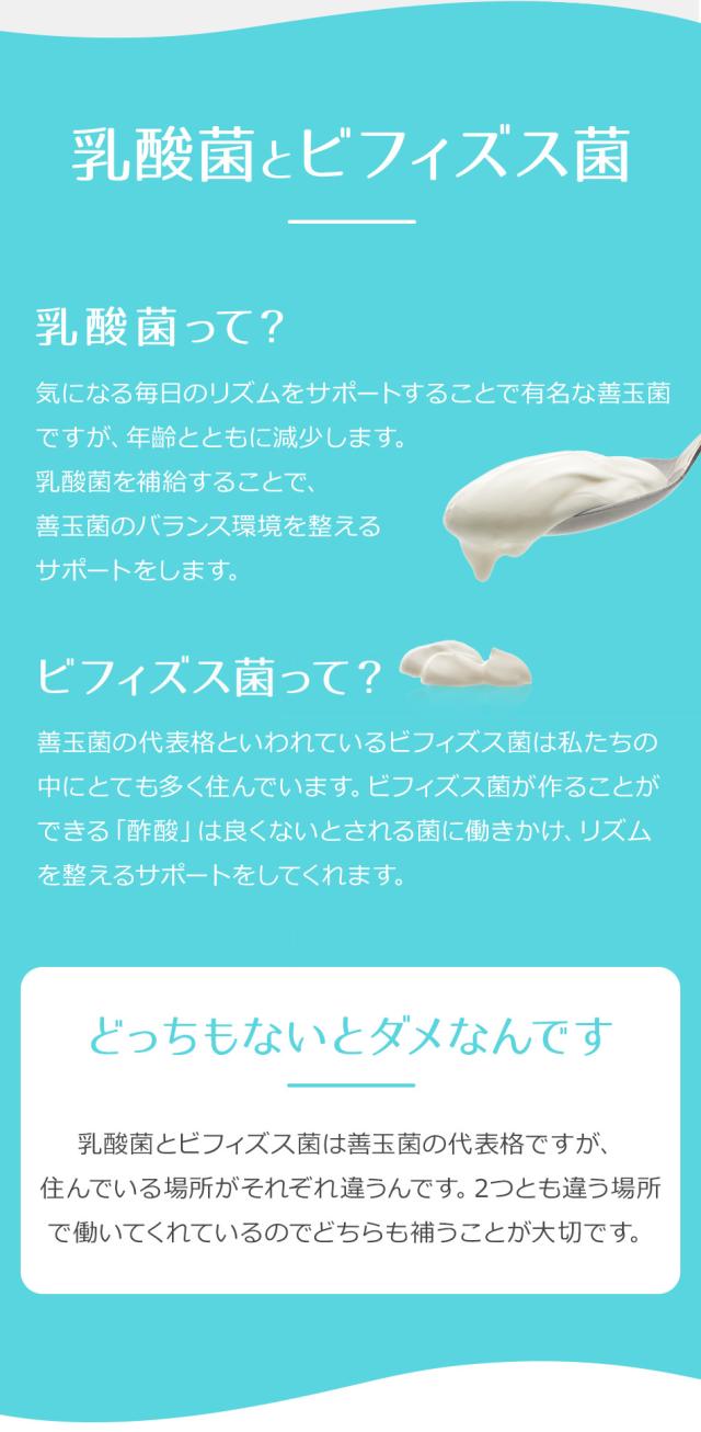 - ビフィズス菌を購入していたのですが、効果はあったのですが、無くなるタイミングだったので、どちらが効くか試す為に更に購入しました。2ヶ月は試さないと分からないかなと思っています。