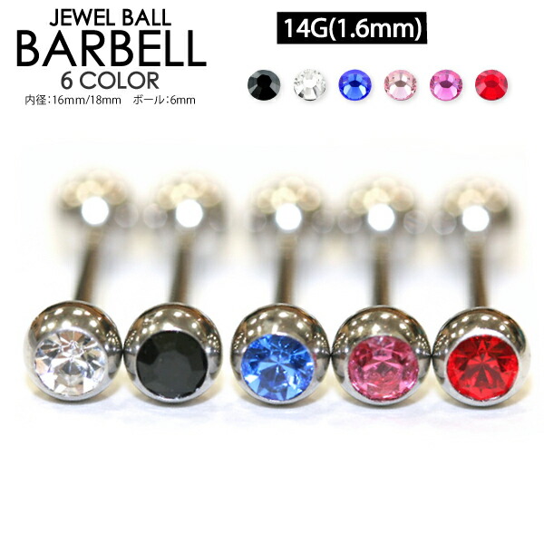 【メール便対応】ボディピアス バーベル BIGジュエル 14G(1.6mm) ストレート ミディアムサイズ サージカルステンレス316L ラインストーン ボディーピアス シャフト16、18mm ボール6mm 軟骨ピアス イヤーロブ 14ゲージ ┃