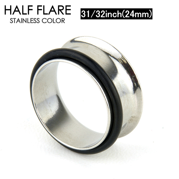 【メール便対応】シングルフレア ハーフフレア 24mm ボディピアス サージカルステンレス316L アイレット 定番ボディーピアス ホールトゥピアス 31/32インチ(24ミリ)┃