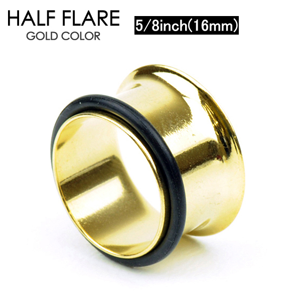 メール便 送料無料 シングルフレア ゴールド 16mm(5/8inchインチ) サージカルステンレス316L製(医療用)ハーフフレア【イヤーロブ ホールトゥピアスに最適 サーキュラ バーベル CBR キャプティブ ビーズリング BCR ボール クロージャー リング】16ミリ┃