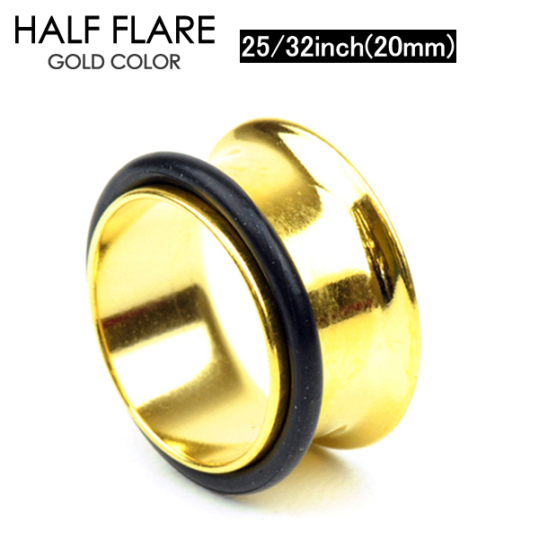 メール便 送料無料 シングルフレア ゴールド 20mm(25/32インチ) サージカルステンレス316L製(医療用)ハーフフレア【イヤーロブ ホールトゥピアスに最適 サーキュラ バーベル CBR キャプティブ ビーズリング BCR ボール クロージャー リング】20ミリ┃