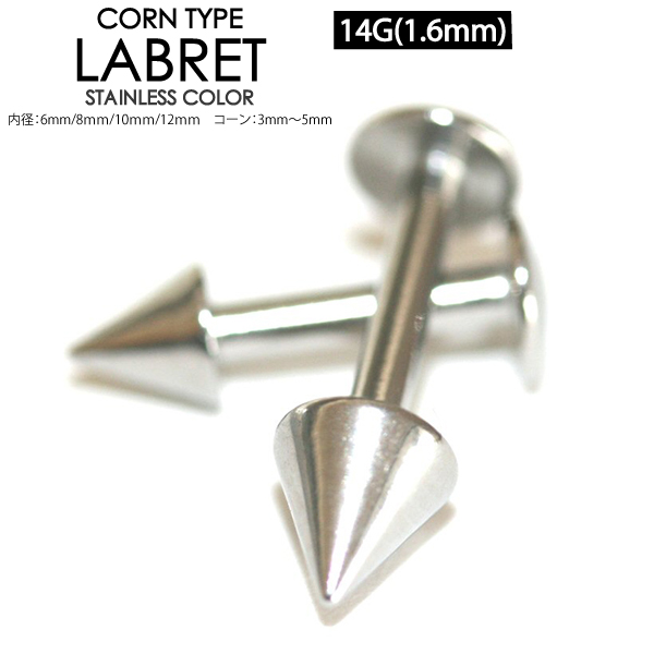 【メール便対応】ラブレット スタッド コーン 14G(1.6mm) サージカルステンレス316L スパイク ネジ式 定番 ボディーピアス 口ピアス トラガス 軟骨ピアス ボディピアス 14ゲージ(1.6ミリ)┃