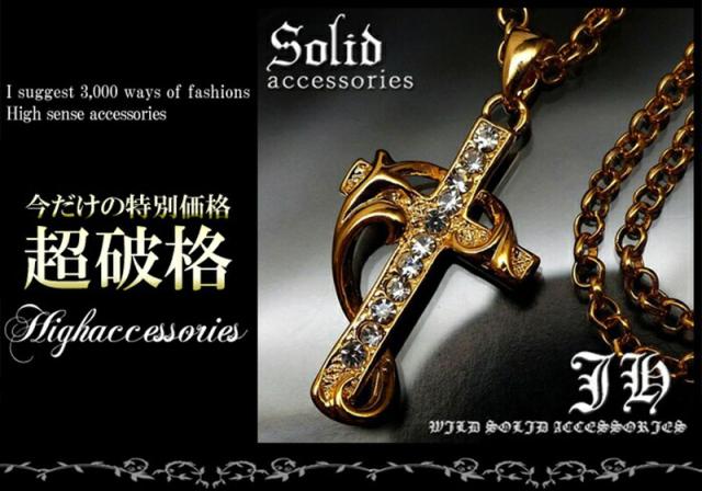 送料無料 クロスネックレス 高級プラチナ加工 ブラック ゴールド メンズ チェーン クロス 十字架 ネックレス ペア 【 n198-t 】