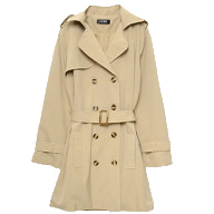 ベルト付フレアワンピ風ダブルボタンシンプルトレンチコート