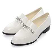 デコラティブビジュー付きポインテッドトゥローファーパンプスシューズ