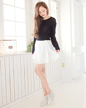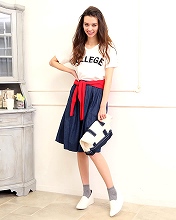 ハット 白ニット ガウチョパンツ ホワイトスニーカー クラッチバッグ シャツ ギャザースカート グレースニーカー