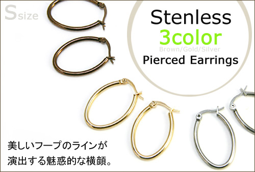ステンレスピアス Sサイズ オーバルフープピアス 全3色 シルバー ゴールド ブラウン レディース 女性 送料無料