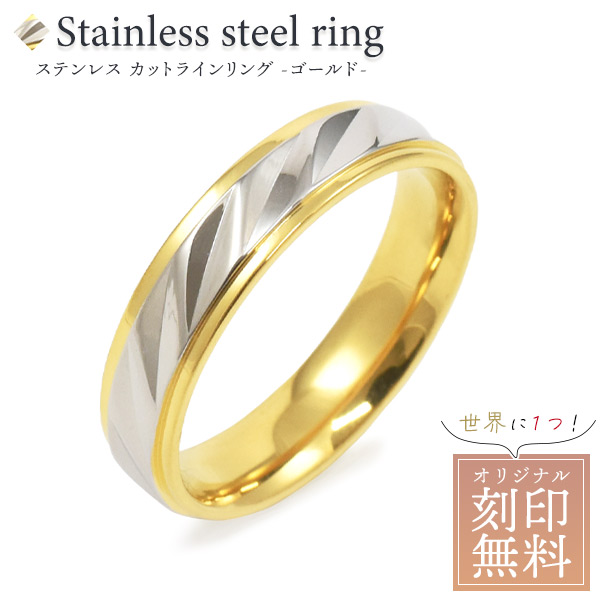 刻印無料 ステンレス カットラインリング ゴールド 刻印無料 5号から25号まで 奇数号 プレゼント お誕生日 記念日 贈り物 指輪 女性 プレゼント 名入れ無料 送料無料 指輪 アクセサリー