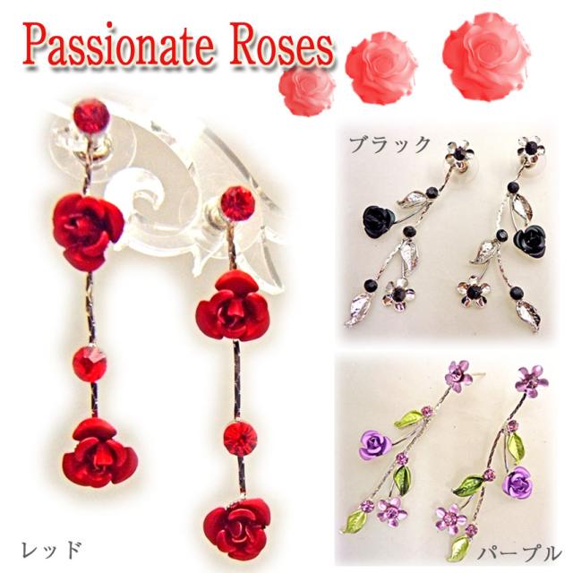 ピアス薔薇ヨーロピアンミスティーローズルビーレッドアメジストラベンダーオニキスブラックカラーストーン
