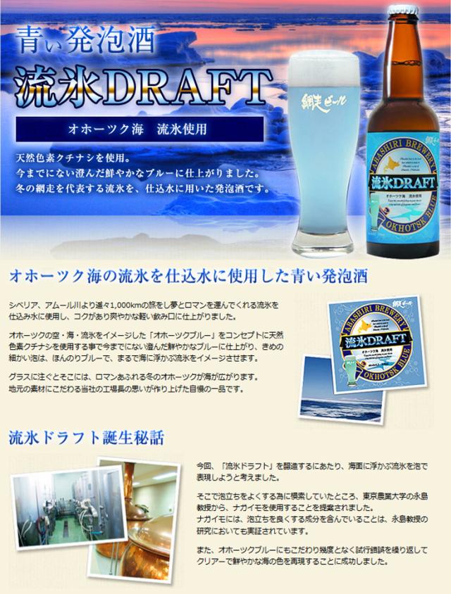 累計出荷100万本を突破した青い発泡酒「流氷ドラフト」の4本セットです。仕込水に実際の流氷を使用し、スッキリとした味わいが特徴です。