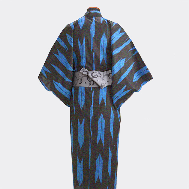 浴衣 男性 レンタル NT-my110 浴衣3点セット☆浴衣・帯・下駄☆黒地/青矢柄 送料無料