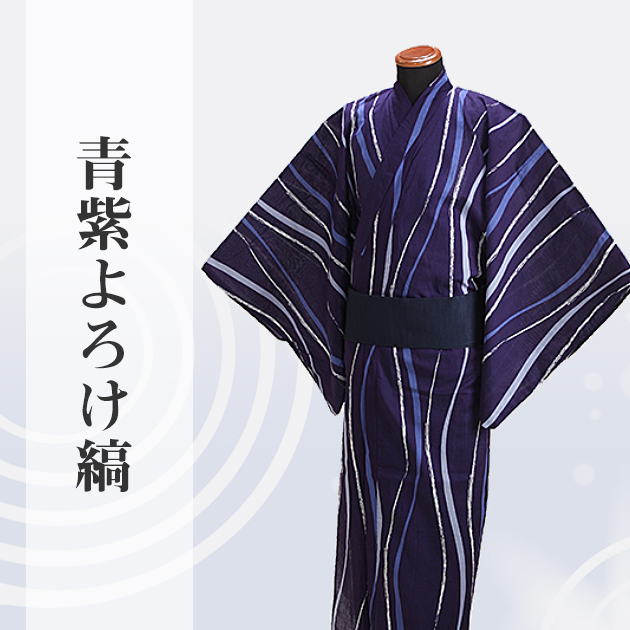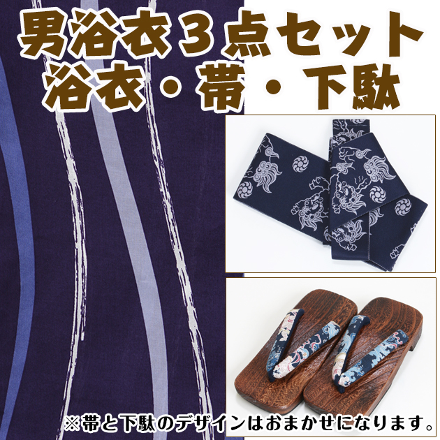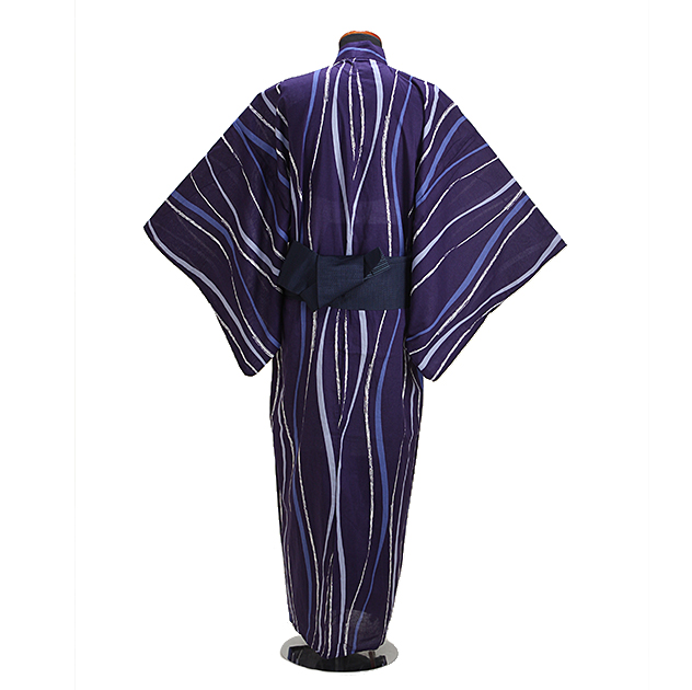 浴衣 男性 レンタル NT-my134 浴衣3点セット☆浴衣・帯・下駄☆青紫色/よろけ縞 送料無料