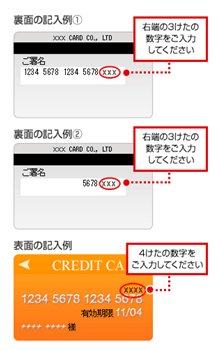 ※ここに数字が印字されていないカードはご利用いただけません。※アメリカン・エキスプレスの場合は、カード表面右上の4けたの数字になります。