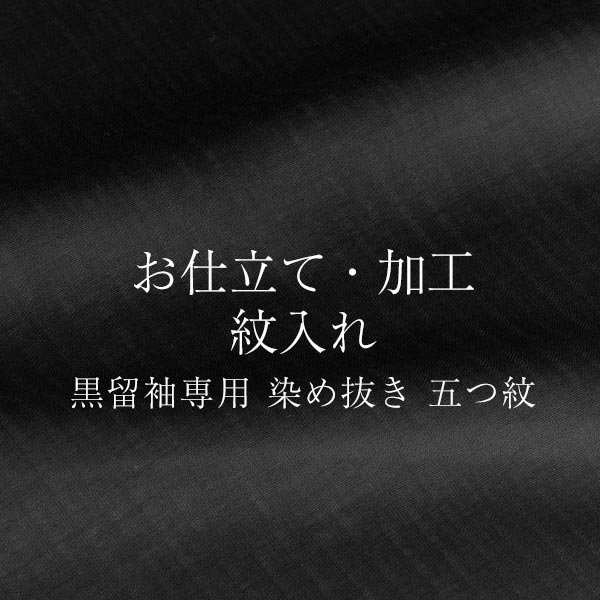 こちらの商品は、未仕立て・仮絵羽状態の正絹の黒留袖に、染め抜き五つ紋を入れたい方向けのオプション商品となります。