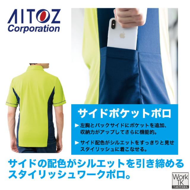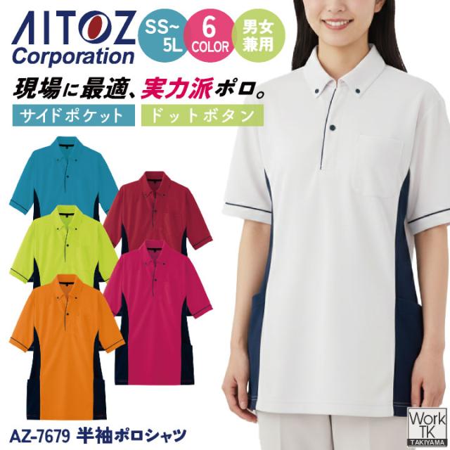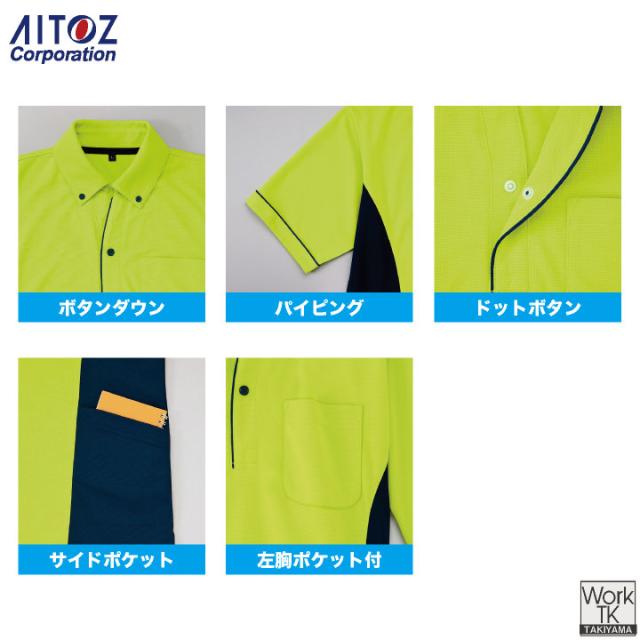 アイトス 半袖ポロシャツ ボタンダウン 運送業 ビルメンテナンス 物流 倉庫 介護 福祉士 ヘルパー デイサービス 事務職 医療 イベント サービス 作業服 作業着 男女兼用 春夏 AITOZ az-7679