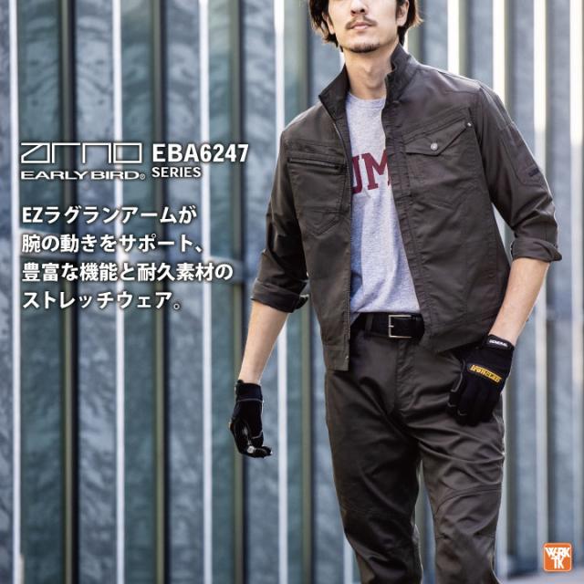 ビッグボーン 春夏 ストレッチ ジャケット 長袖 ジャンパー ブルゾン 作業着 作業服 メンズ レディース 国産素材 冷感 帯電防止 大きいサイズ アーリーバード bb-eba6247
