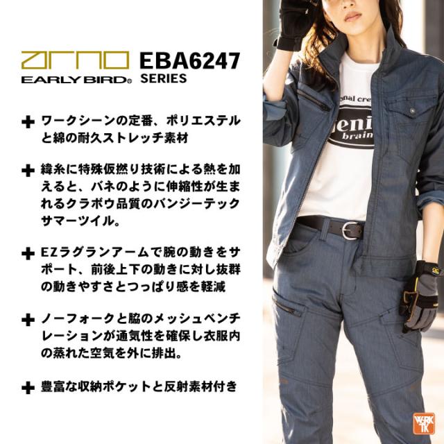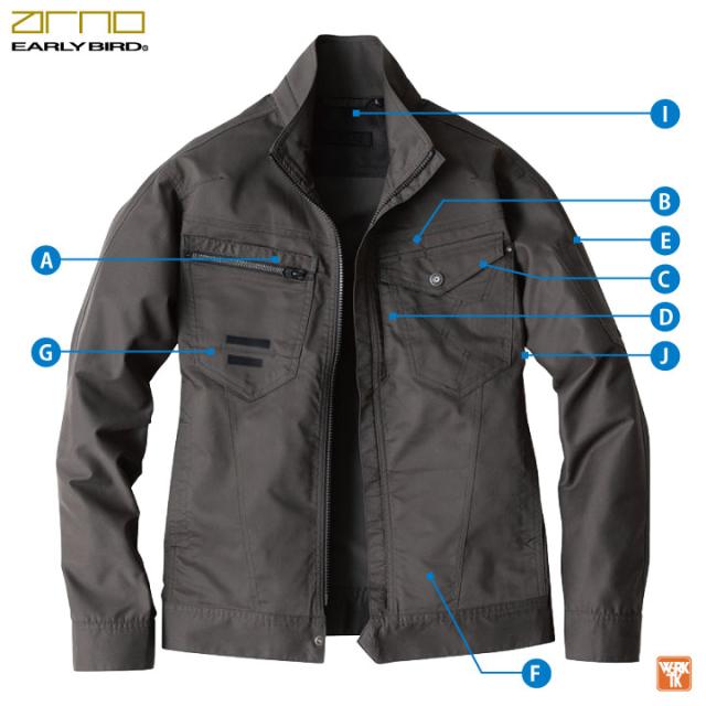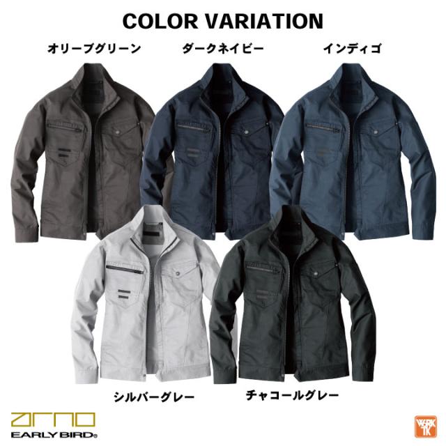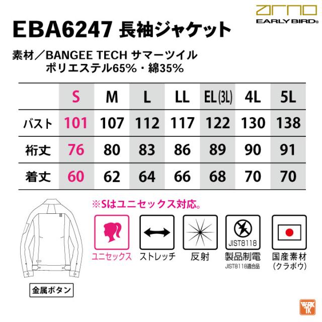 EARLY BIRD EBA6247 長袖ジャケット 男女兼用 グリーン ネイビー インディゴ シルバー グレー S M L LL 3L 4L 5L