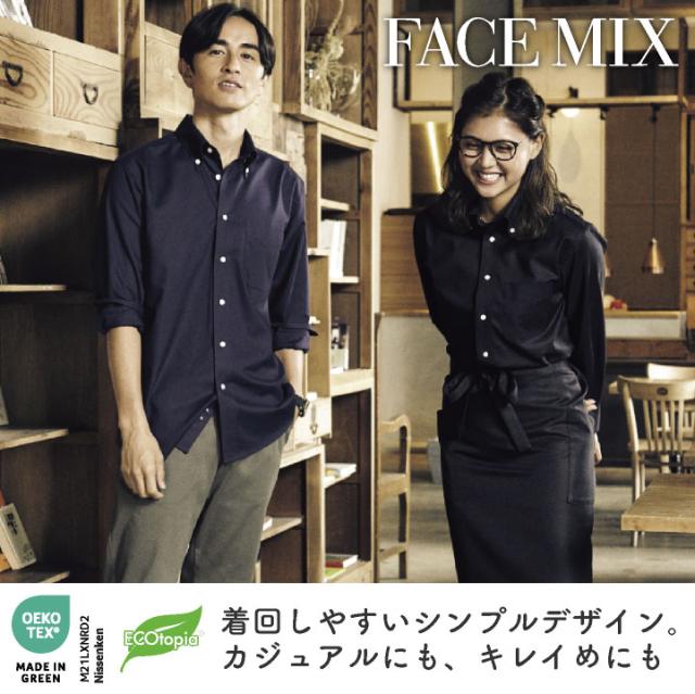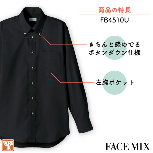長袖シャツ メンズ レディース オックスフォード ボタンダウン シンプル サービス 飲食店 カジュアル カラバリ豊富 ボンマックス FACEMIX bm-fb4510u