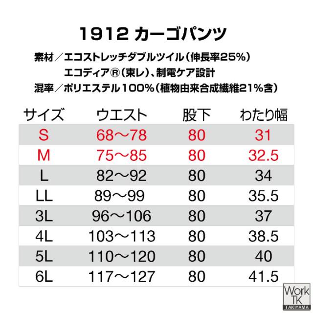 1912 バートル カーゴパンツ 春夏 秋冬 工事現場 建設業 農作業 ガーデニング アウトドア おすすめ 制服 人気 ブラック ネイビー ストームグレー アッシュグレー
