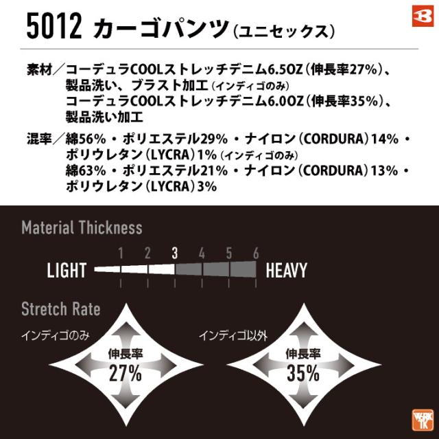 BURTLE 5012 カーゴパンツ 優れた耐久性とストレッチ性を兼ね備える今のワークスタイルにフィットしたCORDURAシリーズ