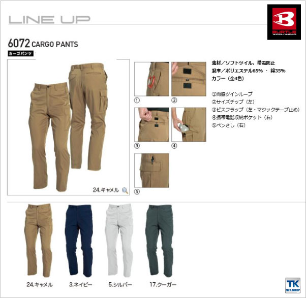 バートル カーゴパンツ 秋冬 メンズ レディース 作業ズボン 作業服 ベトナムズボン 作業着 より美しく快適に BURTLE おしゃれ bt-6072