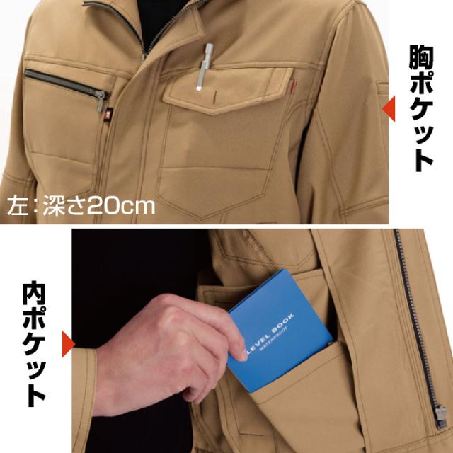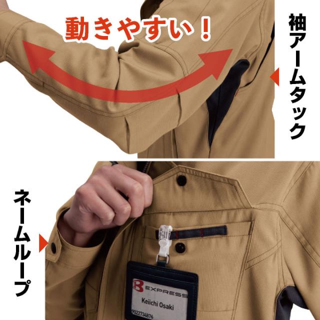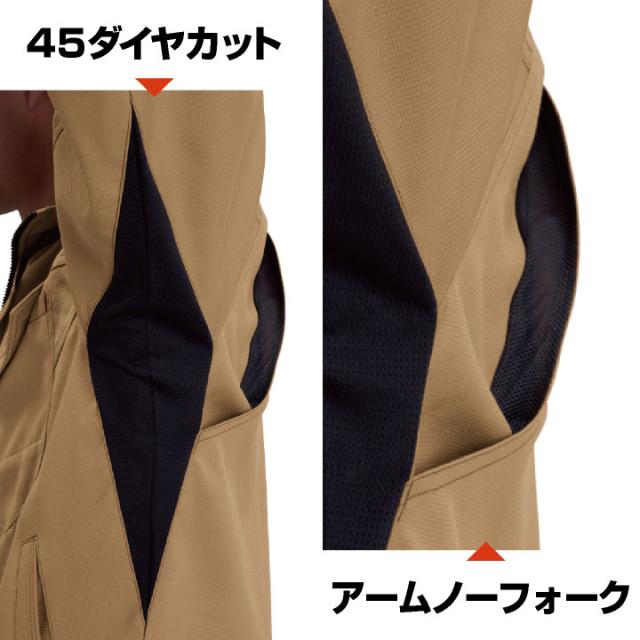 7091 長袖ジャケット 独自カットで腕の上げ下げが楽々!点接触でべたつかずに快適に着られます。