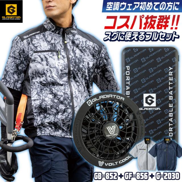 空調作業服 ファン バッテリー フルセット 半袖ブルゾン 空調ウェア ファン付きウェア サイドファン UVカット 暑さ対策 熱中症対策 涼しい 春夏 作業着 農作業 ゴルフ 釣り 父の日 ギフト プレゼント グラディエーター 即日出荷 cc-g262030