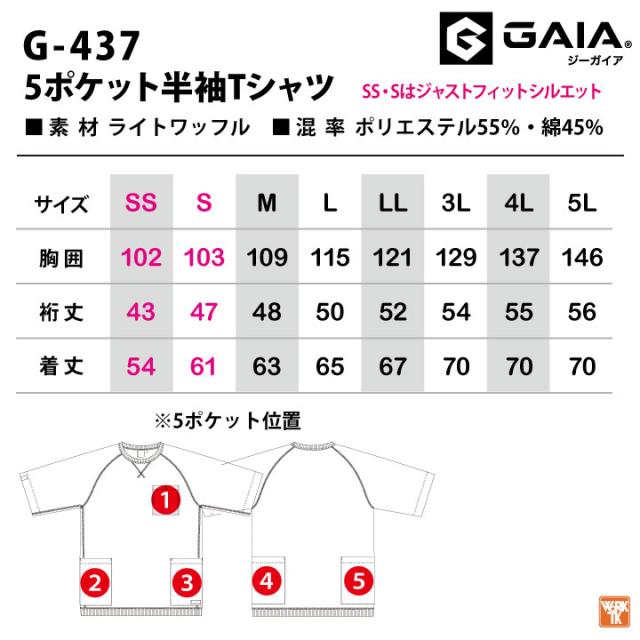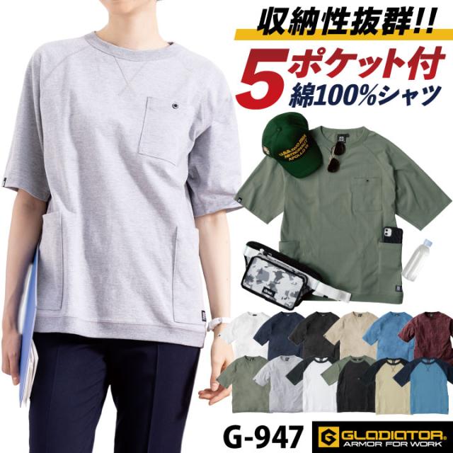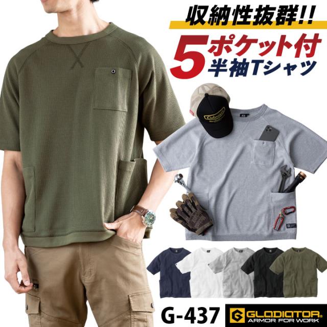 G-437 収納性抜群!! 5ポケット 半袖Tシャツ 男女兼用 GLADIATOR CO-COS