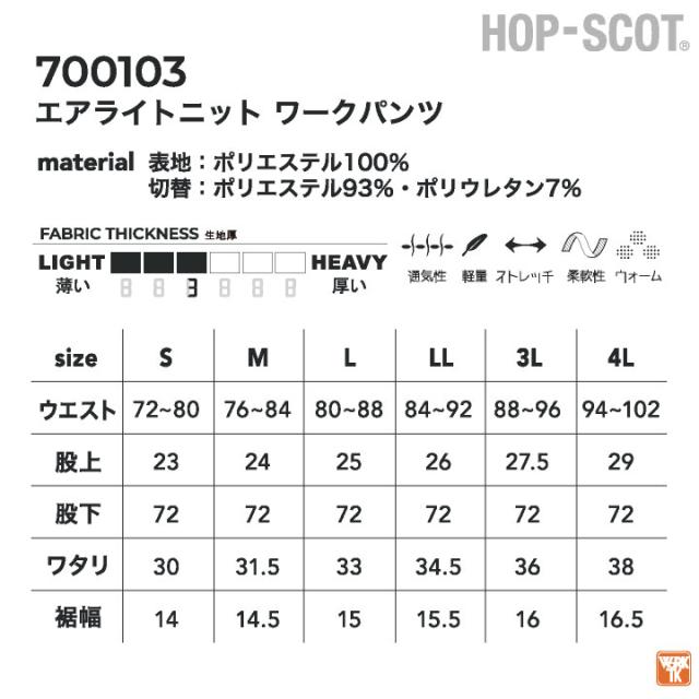700103 中国産業 HOP-SCOT エアライトニットワークパンツ 軽量で通気性に優れ、耐久性抜群のダンボールニット素材。