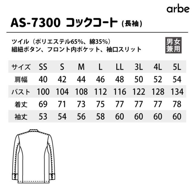 コックコート AS7300 arbe アルベ CHITOSE チトセ 厨房服 レストラン カフェ 居酒屋 飲食店 サービス ユニフォーム メンズ レディース 男女兼用 長袖コックコート ct-as7300