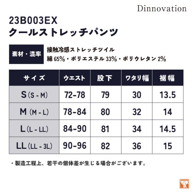 23B003EX Dinnovation クールストレッチパンツ カーゴパンツ 接触冷感 男女兼用
