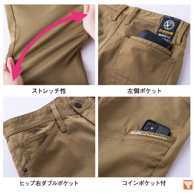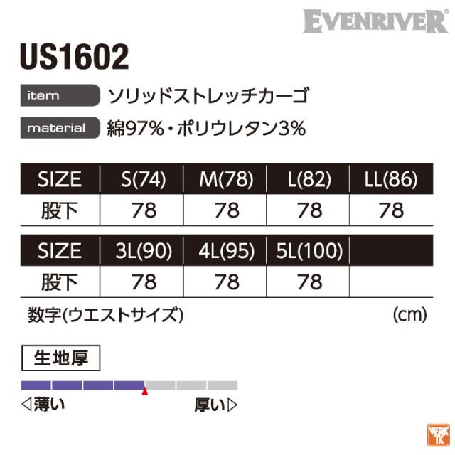 EVENRIVER US1602 ソリッドストレッチカーゴ 高品質な綿素材を多く含む、ソフトな肌触りのストレッチウェア。 カーキ ネイビー ライトブラック ストーンシルバー